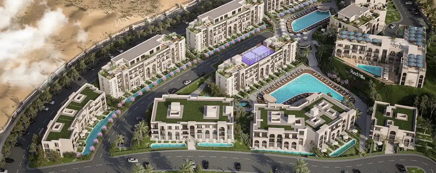RED HILLS – SAHL HASHEESH is a premium residential and touristic development located in the heart of Downtown Sahl Hasheesh, one of the most prestigious destinations on the Red Sea. The project offers a perfect balance between modern living, privacy, and resort-style lifestyle, only 500 meters from the beach.
